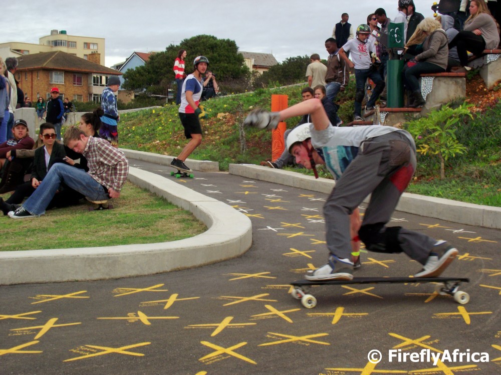 This past Sunday the inaugural Donkin Downhill Dash took place at the Donkin Reserve here in Port Elizabeth. Since the upgrade at the Donkin Reserve local skateboarders have discovered that the new winding path from the lighthouse down towards Chapel Street is the ideal skateboard run. The n_mb city project approached the Mandela Bay Development Agency who was responsible for the upgrade to support a downhill skateboard competition and they agreed. The rest, as they say, is history. I posted a couple more pictures on The Firefly Photo Files.
