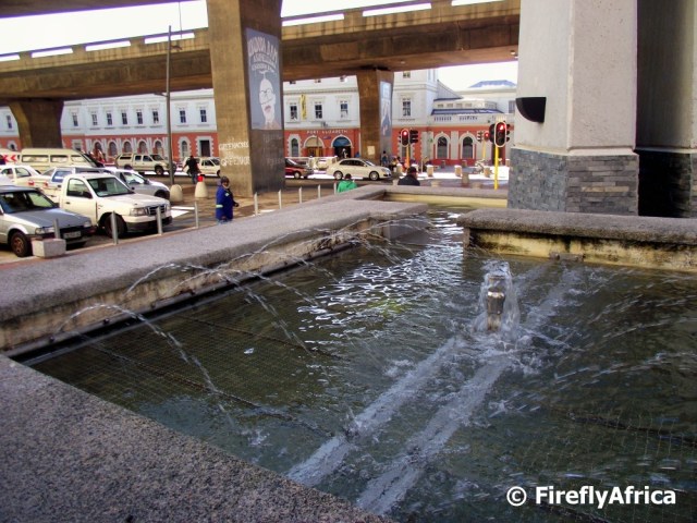 One of the big projects which formed part of the Route 67 development was the opening up of Strand Street just below Market Square (and next to the bus terminus). I took the Kidz to climb the Campanile last week and walked up to visit the Public Library while we were there. One of the new features installed next to Strand Street just before you climb the steps up to Market Square is a fountain.