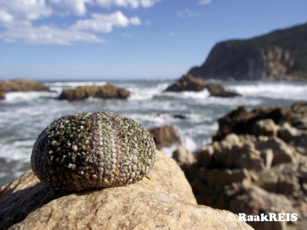 Almal wat al langs ‘n Suid-Afrikaanse strand gestap het moes die een of ander tyd êrens ‘n seepampoentjie opgetel het. Ek weet ‘n seepampoentjie is ‘n “sea urchin” in Engels, maar het nog altyd gewonder of dit dalk ‘n ander naam in Afrikaans het wanneer dit nog leef. Die eerste een wat ek besluit om te vra was my goeie vriend Google. Hy laat my selde in die steek en hierdie geleendheid was nie anders nie. Penny Nyren se boek Ontdek Stande was bo-aan die soeklys en daarin sê sy dat ‘n lewende seepampoentjie ‘n see-engel genoem word. See-engele woon gewoonlik op koraalriwwe of in rotspoele en het skerp penne wat hulle hele dop (skulp) bedek. Hierdie gevaarlike penne word gebruik om hulle te beskerm en is gewoonlik giftig. Probeer om nie in een van hulle te trap nie, want daardie einste penne breek maklik in jou voet af en kan maklik infeksie veroorsaak. Die seepampoentjie in die foto het ek gekry op ‘n rots by die Knysnakoppe en moes deur iemand daar neergesit geword het nie lank voor my nie.