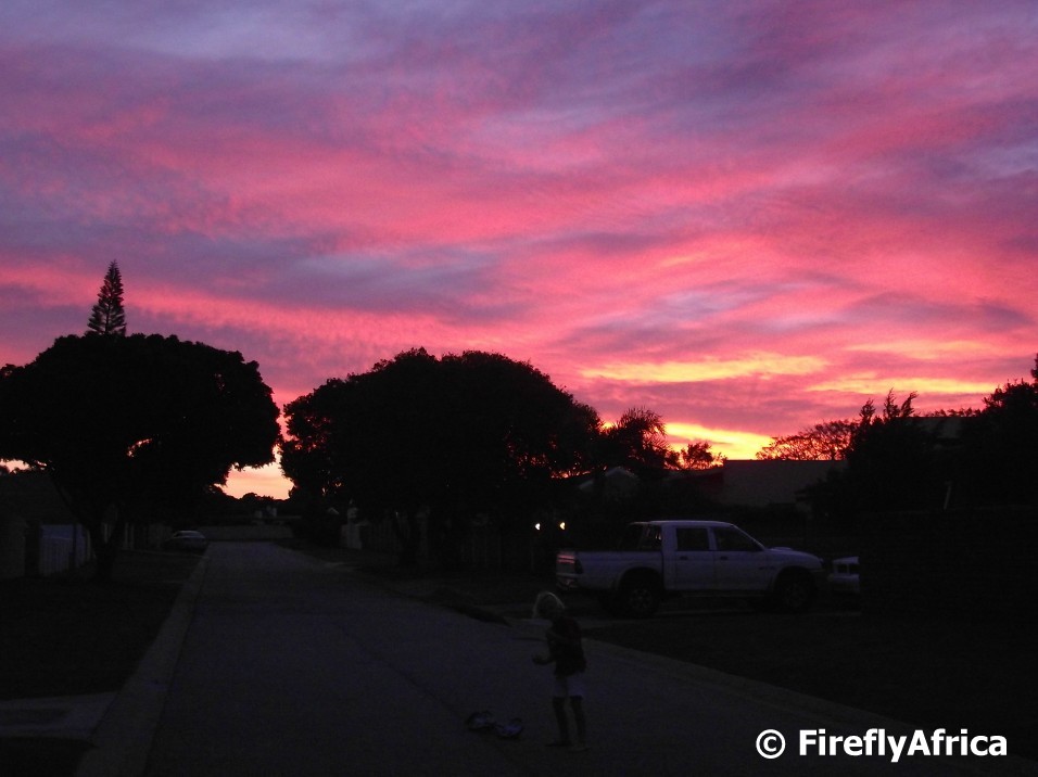Over the last week or so we’ve had a number of stunning sunsets here in Port Elizabeth.  Unfortunately I was just never in a position to get a photo, but that was until last night.  I spotted the sky changing colour through the lounge window, grabbed my camera and ran out into the street.  And presto, here it is straight out the camera with no adjustments made.
