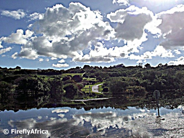 Even though there is still another month to go till the end of winter we’ve already had the 3rd wettest winter ever in Port Elizabeth.  Last week we had two days of rain again and this following the flooding we had three weeks ago means that there is a lots of water around.  I drove out to have a look at the Seaview Road just outside the city which is over 1,5 meters under water.  Took this picture to the side of the road with the clouds reflecting in the water and then played around with a bit of HDR to give it that extra effect.