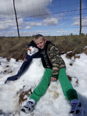 The important part though was that we got to see snow for the first time, even if it was only a patch next to the road, and wasn’t going to let the opportunity to experience it go to waste.  After doing the obligatory snowball fight the Kidz got right into building their first snowman, adding the scarf and beanie that came along for this purpose and not forgetting the carrot I had to stop and buy in town after breakie.