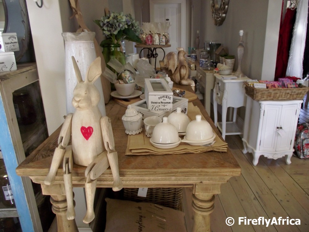 Richmond Hill has really become one of the “in” places as far as restaurants and boutique shops go in Port Elizabeth. I had a couple of minutes to spare while in the area and strolled into Decor on Irvine for a look. The first thing that grabbed my attention as I walked in was the wooden rabbit with the big red heart. Thank goodness I didn’t have my wallet otherwise I would have been trying to find it a nice spot at home right now.