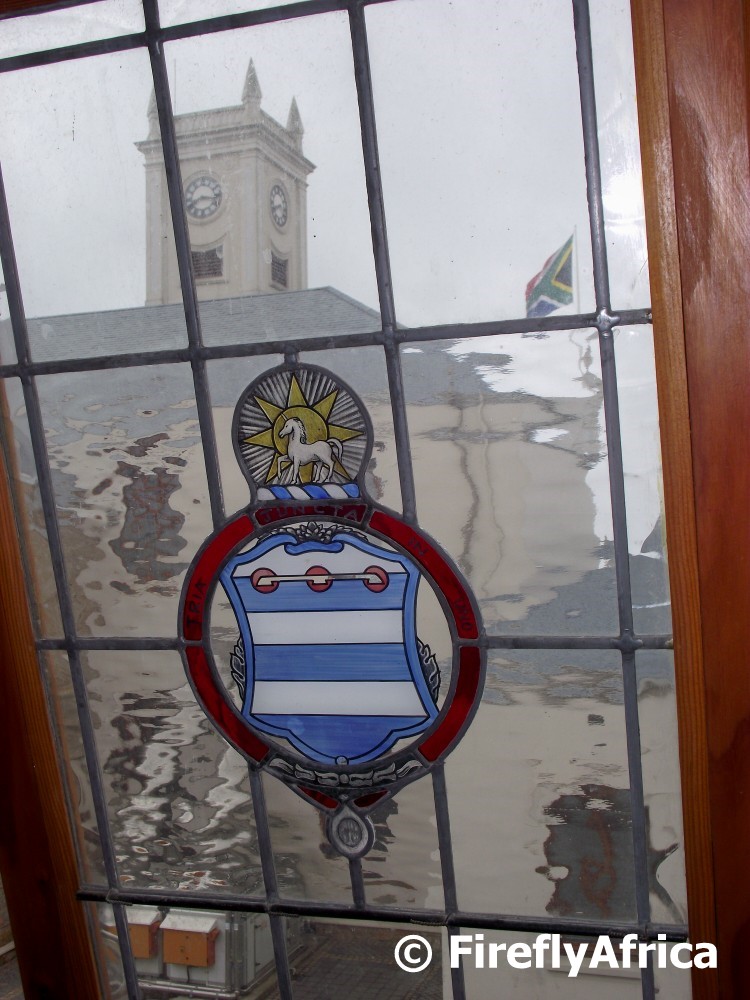 The Grey Institute across the road from the Donkin Reserve was completed in 1859 and housed Grey High School until 1915 when they moved to their present site in Mill Park. Since then the building housed Pearson High School (now in Summerstrand) and then the Albert Jackson Primary School. Since it was bought by the Mediterranean Shipping Company the building has had extensive renovations done to it although the historic look and feel was kept. When I got to visit a little while ago work is being done on the old rectory and I really like the fact that they decided to insert the Grey High School shield into the stained glass windows.