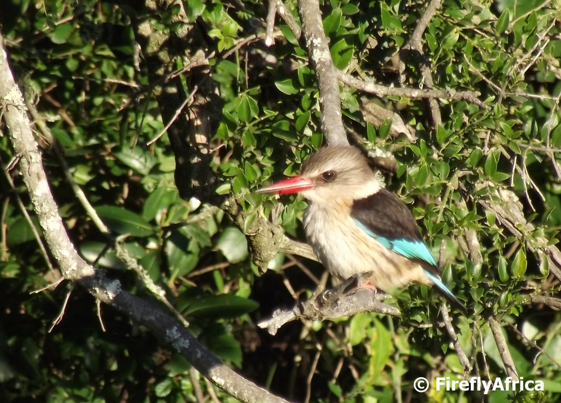 On a game drive at Pumba Game Reserve near Port Elizabeth our ranger pointed out a Brown-hooded Kingfisher sitting in a tree next to the game drive vehicle. The next thing he said kinda got our attention. He asked us to look around and see if we could see any body of water. There was none. The Brown-hooded Kingfisher doesn’t necessarily feed on fish but also on insects such as butterflies, bees, wasps, locusts and ants. These invertebrates are usually hawked aerially, killed and then eaten. This means that it doesn’t have to live near water like all his other Kingfisher cousins.