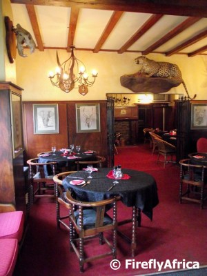 The hotel’s dining area called De Oude Martha, the Hunters Pub (in the picture) and the guest lounge are all situated in what was the original sawmill house while the rest of the hotel as it is today was built in the 1980’s and 1990’s.