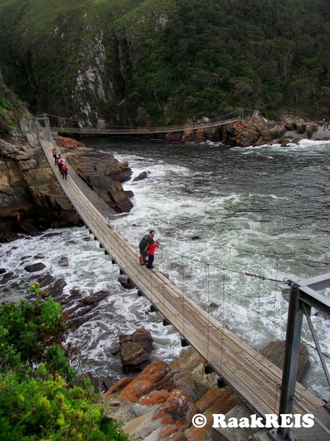 Die Tsitsikamma Nasionalepark op die Tuinroete is een van die mooiste plekke in Suid-Afrika met sy inheemse woude, loodregte kranse en pragtige kuslyn. Die 1 km lange mondwandelpad van die ruskamp tot by Stormsriviermond is die gewildste staproete in die park en die hoogtepunt is die drie hangbrûe by die riviermond self. Die oudste een van die drie steek die rivier oor terwyl die twee mees onlangse toevoegings oorgesteek word soos mens die rivier met die paadjie langs nader. Die enigste waarskuwing wat ek het vir besoekers is dat daar baie trappies op die staproete is en nie sommer aangepak moet word as mens moelik stap nie.