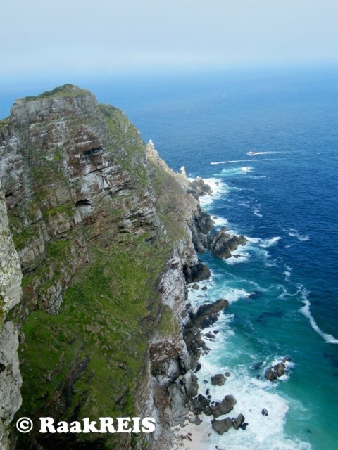 Wanneer mens opgeklim het tot by die ou vuurtoring kan jy Kaappunt self met sy loodregte kranse sien waar dit afreik tot waar die see op die rotse breek.