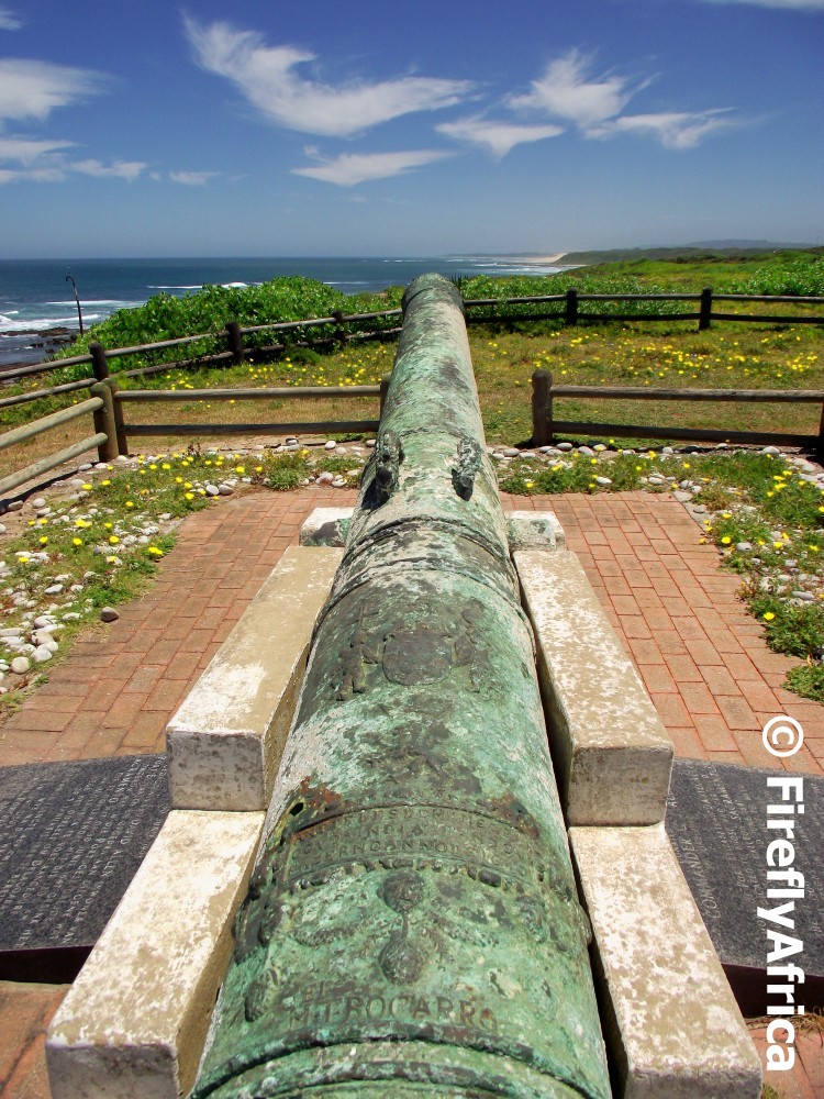 The cannon in Schoenmakerskop at the start of the Sacramento Trail is one of the cannons recovered from the wreck site of the Sacramento in 1977 and points towards the site where the ship went down in 1647. The Sacramento was a Portuguese Galleon on its way back to Portugal when it ran aground in a storm about 1 kilometer from where the cannon is mounted. 72 survivors made it ashore and had to walk from here to Delagoa Bay (present day Maputo in Mozambique) which is 1300 km away, with only 9 making it there alive.