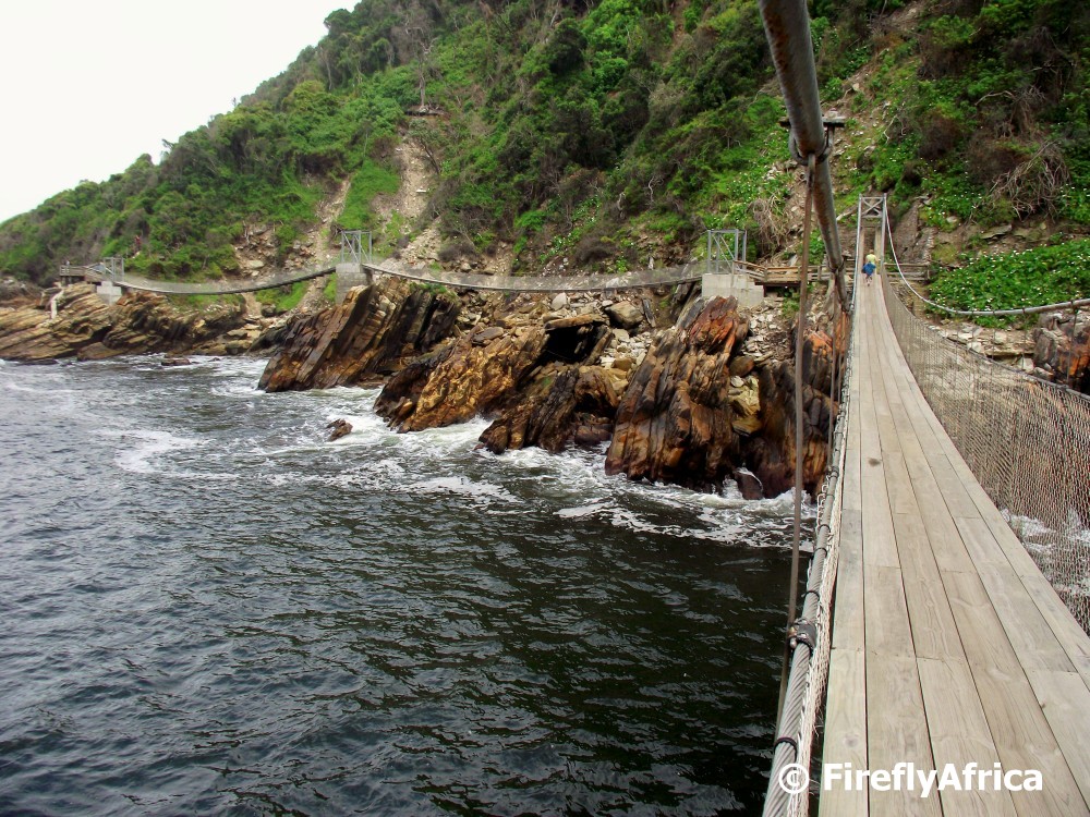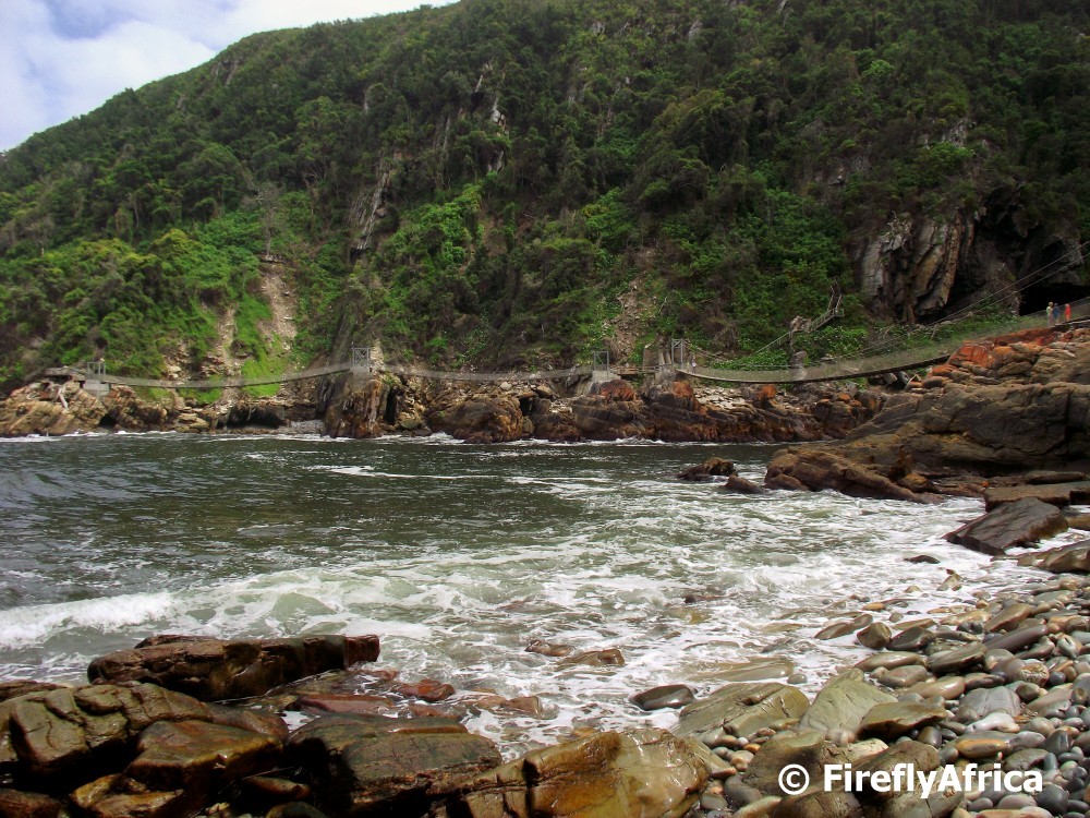 Over the years the suspension bridge over the river mouth has become a main feature in the park and pictures of it has become synonymous with Storms River Mouth.  In 2007 a fire swept through the area close to the bridge and major damage was caused to the walkway as well as the surrounding environment.  The rockface wasn’t deemed safe enough to rebuilt the walkway and park management had to find another way to access the suspension bridge and subsequently further trails.