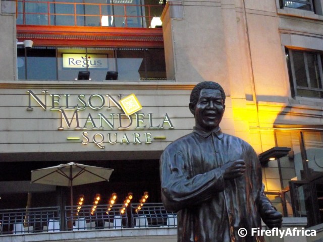 Nelson Mandela’s statue in the Square was sculpted by Kobus Hattingh and Jacob Maponyane, weighs 2,5 tons and measures 2,3 metres from elbow to elbow. The shoulders of the statue are 1.7 metres in width and the shoes are 1 metre in length.