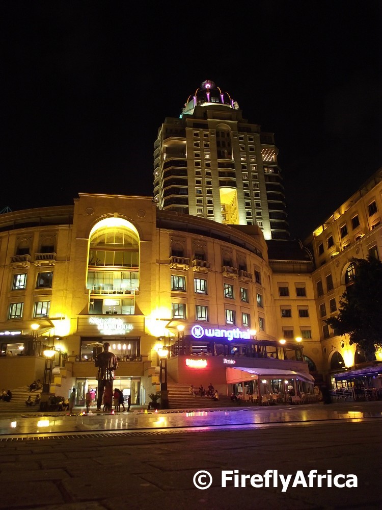 Nelson Mandela’s statue in the Square was sculpted by Kobus Hattingh and Jacob Maponyane, weighs 2,5 tons and measures 2,3 metres from elbow to elbow. The shoulders of the statue are 1.7 metres in width and the shoes are 1 metre in length.