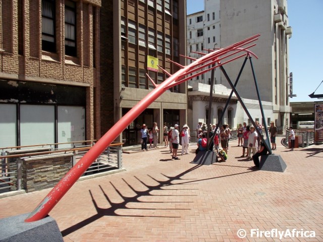 Route 67 has some very interesting art pieces with each one representing something specific.  The Fishbone sculpture on Market Square reconnects the city’s Central Business District with the Port Elizabeth Harbour’s fishing industry which has been a very important aspect of the city in the past and still presently.