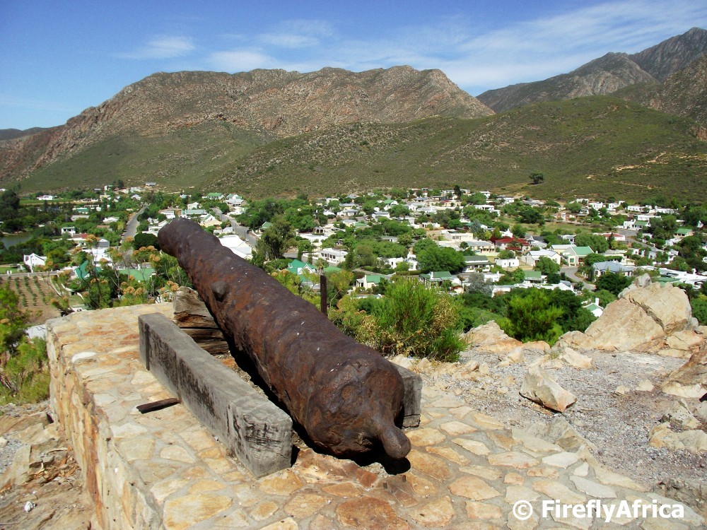 Kanonkop (or Cannon Hill) above the town of Montagu has a beautiful view across the town with this angle looking out over Montagu West. The story goes that the original cannon which stood on this spot and dated from the 1800 was used at some stage for a salute of honor which went horribly wrong and caused a young man from the town to loose both his arms. The farmers then pushed the cannon over the edge of the hill. 20 years later it was retrieved to be fired again, but this time the whole cannon exploded and its spot stood empty until it was replaced by the present one. This cannon was taken out of the sea in Simon’s Town in 1988 after spending over 200 years on the ocean floor.