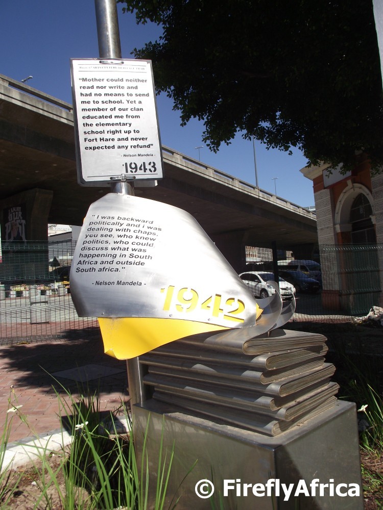 A few weeks ago I posted the blowing newspaper art piece which forms part of Route 67. It may be the biggest but its not the only blowing newspaper piece on the route. At the Campanile there is another smaller one containing quotes by Nelson Mandela.