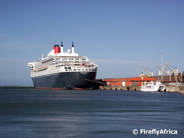 Yesterday (Monday 8 April 2013) was a big day in the history of the Port Elizabeth Harbour. Big being the operative word. It was the day the the largest ocean liner ever built visited the city. And one big ass ship she is. The Queen Mary 2 entered the harbour at just after 7am for the day with passengers going on excursions around the city and out to Addo Elephant National Park and other nearby game reserves. I was fortunate that working in the tourism industry meant that I had business with ship passengers and I could get quay side to get a close up outside view.