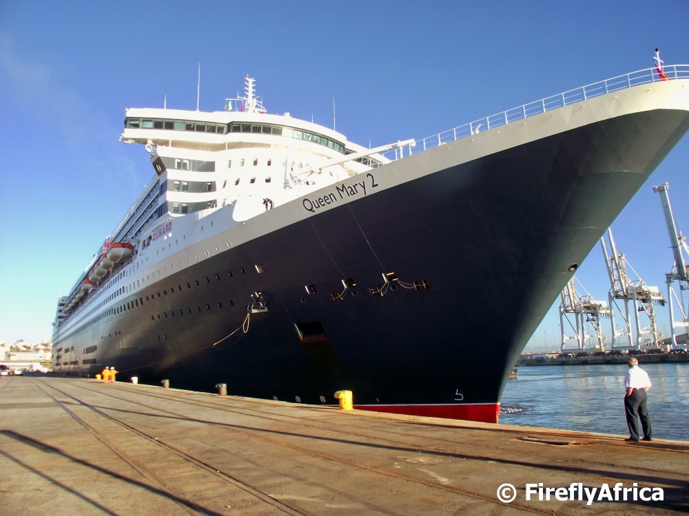 Yesterday (Monday 8 April 2013) was a big day in the history of the Port Elizabeth Harbour. Big being the operative word. It was the day the the largest ocean liner ever built visited the city. And one big ass ship she is. The Queen Mary 2 entered the harbour at just after 7am for the day with passengers going on excursions around the city and out to Addo Elephant National Park and other nearby game reserves. I was fortunate that working in the tourism industry meant that I had business with ship passengers and I could get quay side to get a close up outside view.