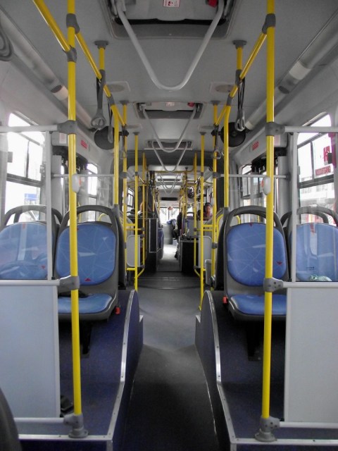 Towards the end of 2012 the city’s Integrated Public Transport Service was finally ready to go operational and started running on the first routes to be implemented.  I got to go on one of Port Elizabeth’s ITPS buses for the first time this week and just couldn’t help snapping a pic of the inside of the bus. Wouldn’t have tried it during peak hour with a full bus though.  Now if only the area I live in would be included on a route and I will use them every day.