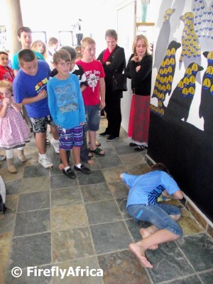The last part of the tour is another highlight.  The penguin pool is where these endangered birds spend their days.  Eddie told the kids about the birds that is there at the moment and which ones would be returning to Algoa Bay soon.  Some of the kids (Drama Princess in particular) really enjoyed the windows from which you can watch the birds swim underwater while the others just couldn’t stop asking question.