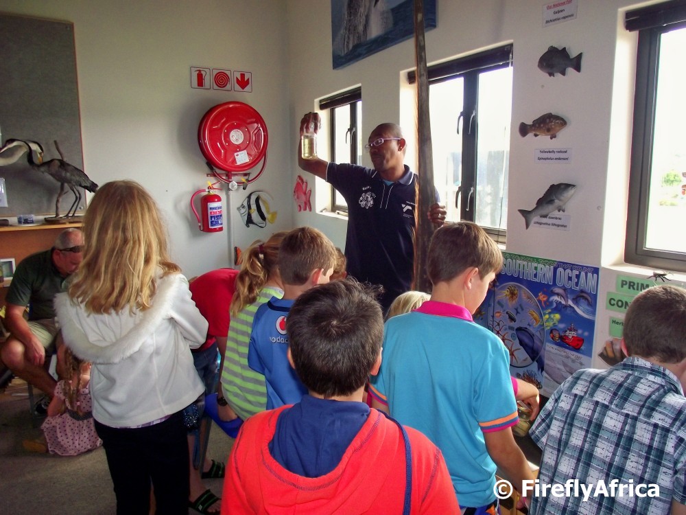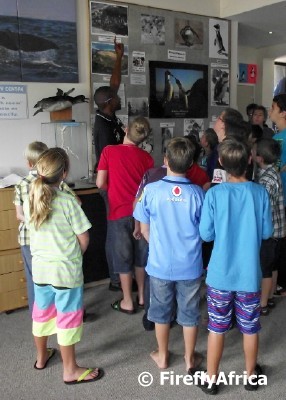The tour was conducted by SAMREC’s environmental education manager, Eddie Molekoa, who expertly showed them around and kept very tight control of the group.  Before the tour I did give them a stern talk about behaving but I was still a bit worried.  Those worries went out the door when I saw the interest they all showed when Eddie started talking.  After an introduction to penguins in the foyer they all had a look into the mouse hole to see the centre’s mouse house.  The next stop on the tour, the Interaction Room.