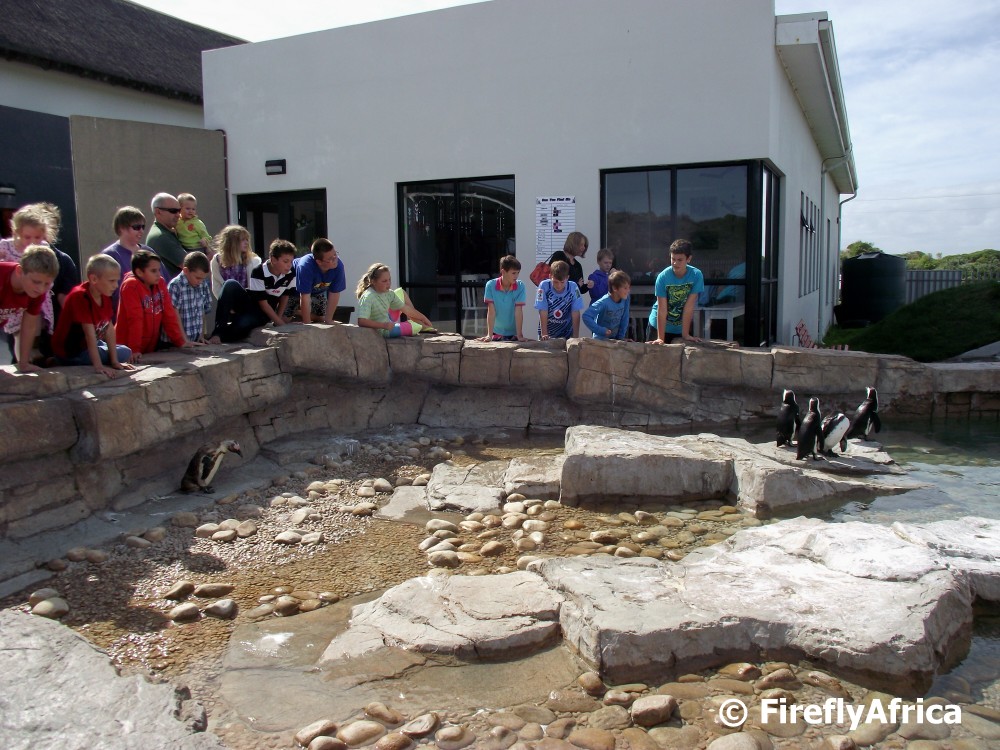 The last part of the tour is another highlight.  The penguin pool is where these endangered birds spend their days.  Eddie told the kids about the birds that is there at the moment and which ones would be returning to Algoa Bay soon.  Some of the kids (Drama Princess in particular) really enjoyed the windows from which you can watch the birds swim underwater while the others just couldn’t stop asking question.