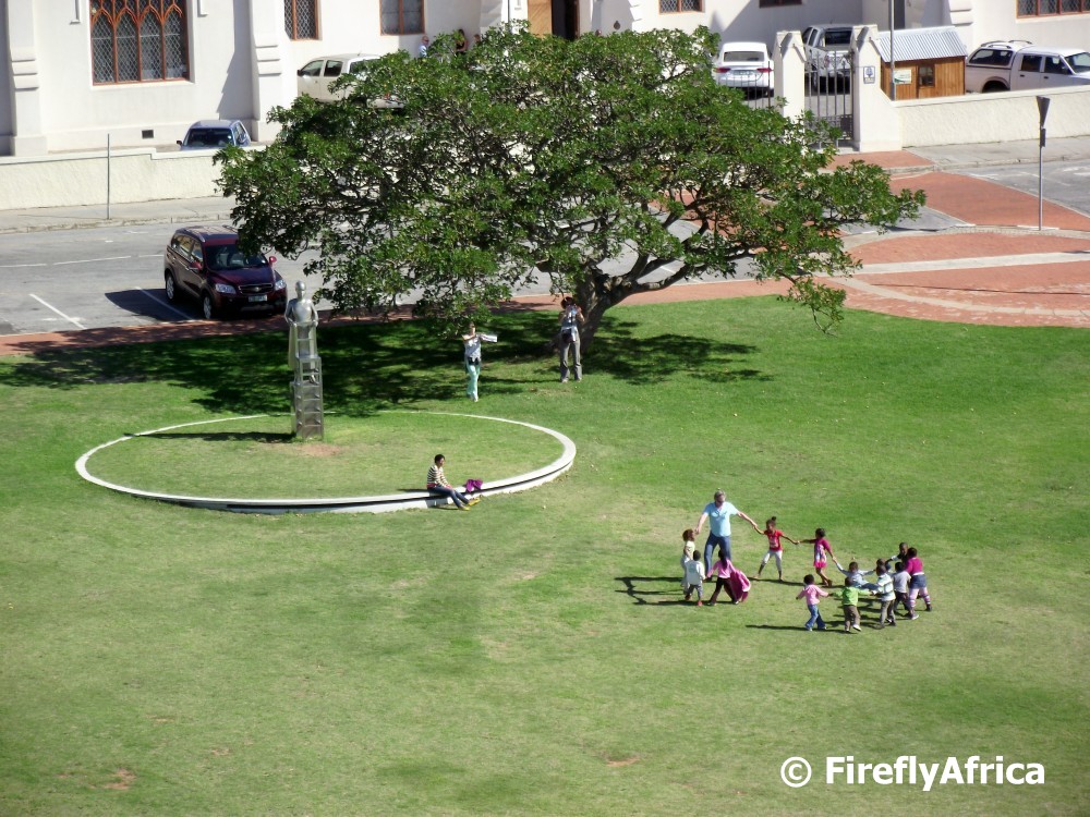I climbed to the top of the Donkin Lighthouse the other day for a couple of pics and … (yes, I am addicted) … a geocache. There was a couple of people with a group of kiddies playing by the Anton Momberg sculpture and I couldn’t but help to snap a picture of them.