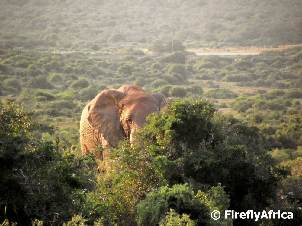 I attended the media launch of the Kirkwood Wildsfees in the Addo Elephant National Park and to end the program off we were taken on an open vehicle game drive through the park.  As is often usual in Addo we had some stunning sightings.  This guy was peeking at us from behind a bush trying to be inconspicuous.  Gives him a bit of a mysterious look, doesn’t it.