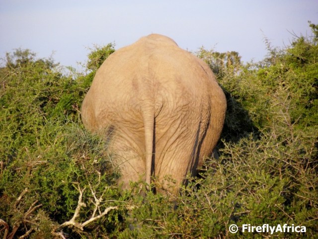 Addo is a funny place in a backside kinda way.  Unless the elephants are actually heading in your direction, the chances are good that as soon as you have lined up your shot that the animal will turn his back and all you get is a booty shot. Bummer!