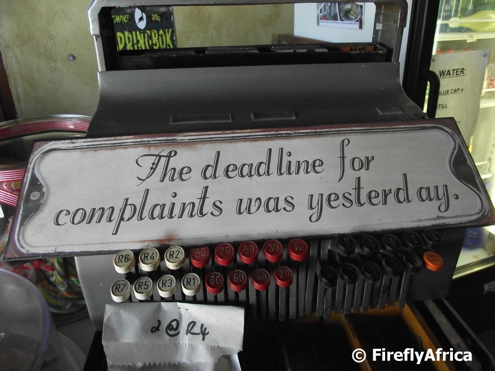 Its weekend, and a busy one at that. The Kirkwood Wildsfees is on in the Sundays River Valley and the National Arts Festival has kicked off in Grahamstown so I don’t want to hear any complaints. Like this sign I spotted in the Padlangs Farm Stall outside Patensie says, “The deadline for complaints was yesterday.”