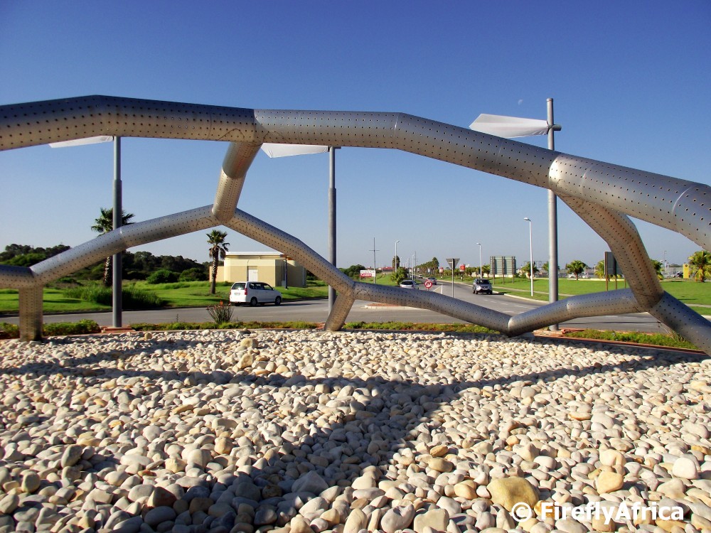 When the soccer ball structures on the traffic circles outside the Port Elizabeth Airport were erected before the 2010 FIFA World Cup it made heads turn. Its become a feature on the city’s roads, welcoming visitors to the Friendly City and showing off our sporting heritage. I stopped at the structures the other day to snap a couple of pictures and wondered how many people who regularly drive past it still notice them. Just a pity the fades flags haven’t been replaced. If it was my call I would put the South African flag on all of them.