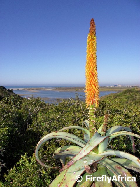 One of my favourite natural things about winter is the fact that it’s when the aloes bloom.  And if you can add to it a beautiful view, like this one of the Swartkops River and the ocean from the Aloe Reserve in Bluewater Bay, then even better.