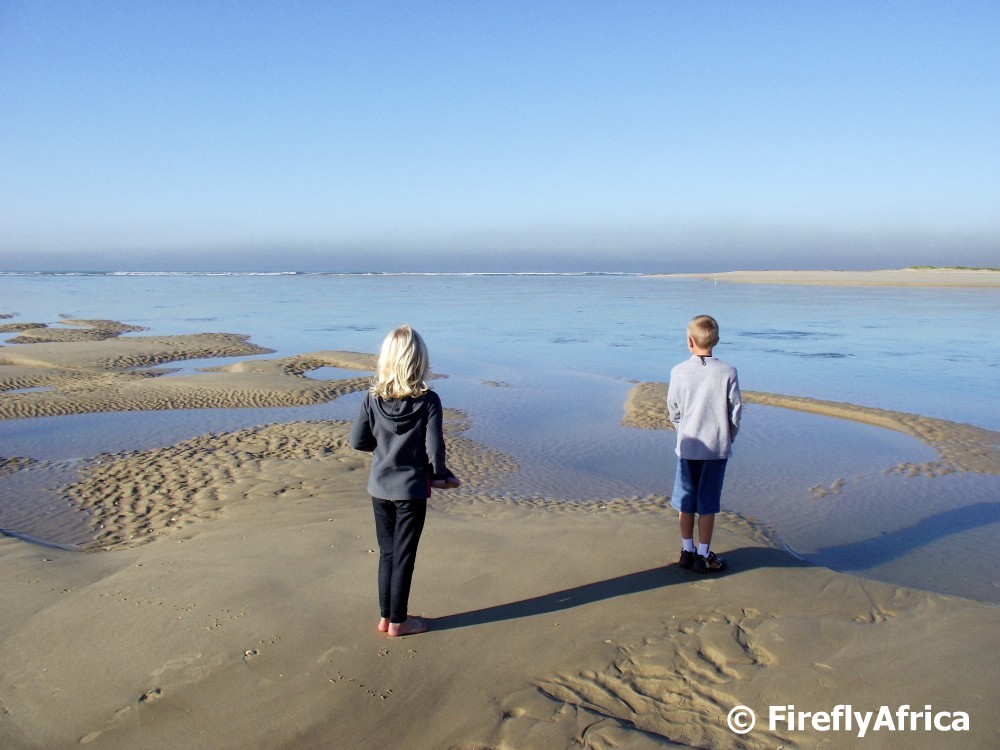 The Swartkops River is the biggest river in Port Elizabeth (and here I’m not counting the Sundays River because technically its not in PE). Its so sad that the river has major pollution problems upstream from Uitenhage down towards the estauray. The kids got to see the river mouth for the first time the other day during our geocaching trip to Bluewater Bay. Chaos Boy just kept asking how deep it was and if he could walk through it. Drama Princess was a little bit more cautious as you can see in the picture and kept slightly back.