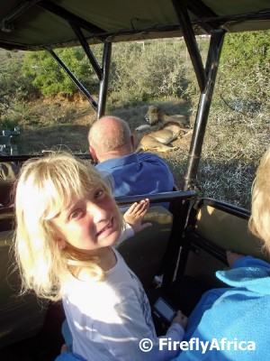 Ranger Romeo met us at the open land cruiser with the Damselfly and Drama Princess taking up the middle seat and Chaos Boy and I going on the back, often bouncy trampoline seat. Romeo did warn us that it’s behind the wheels, but I would endure the little bit of extra bounce for the benefit of having an uninterrupted view (and photo opportunity) behind me in case of a good sighting. After a couple of Cape Mountain Zebras and Kudus, our first Big 5 sighting presented itself. Kuzuko’s two male lions, Kalahari and Matt was having a siesta in the late afternoon sun. There was a moment of panic by Drama Princess which we thought was because we got too close to the lions, but turned out to be the vehicle taking a bump through a ditch. The lions themselves didn’t scare her at all. A brilliant sighting like this early on boded well for the rest of our stay