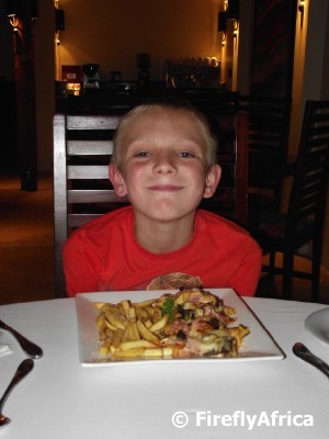From the reception area we were whisked to the lodge in a game viewing vehicle and after a welcome drink had a quick tour of the facilities before being allowed to settle in and relax. The KidZ loved the view from our private deck but it didn’t take long for them to discover the Wii connected to the big plasma television in the main lounge and they were out under our feet, joining a couple of other kids in a game of Wii tenpin, golf and tennis.