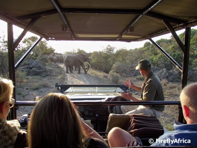 Romeo was the perfect ranger. He’s knowledge was outstanding but he didn’t bore us with all the details unless we wanted to know. Ours weren’t the only children on the vehicle and he switched from giving us serious info to joking with the kids, mixing it up just enough. Then word came through, although it sounded like he knew it already, that another member of the Big 5 was hanging out in a valley on the other side of the lodge. So off we went hopping along the uneven road to look for the biggest of the Big 5, Loxodonta africana, or the African Elephant.
