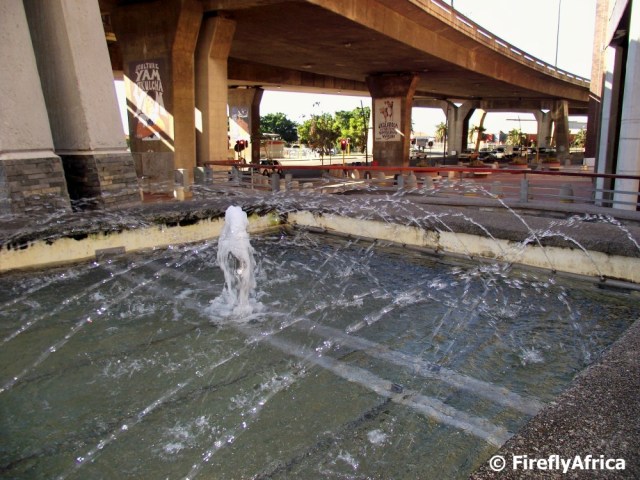One of the first things they did when they started with the Route 67 developement was to open up the section of Strand Street between Market Square and the Campanile. A new set of steps were built to link the two areas and at the bottom of the steps a fountain was installed to cheer the area up a bit.