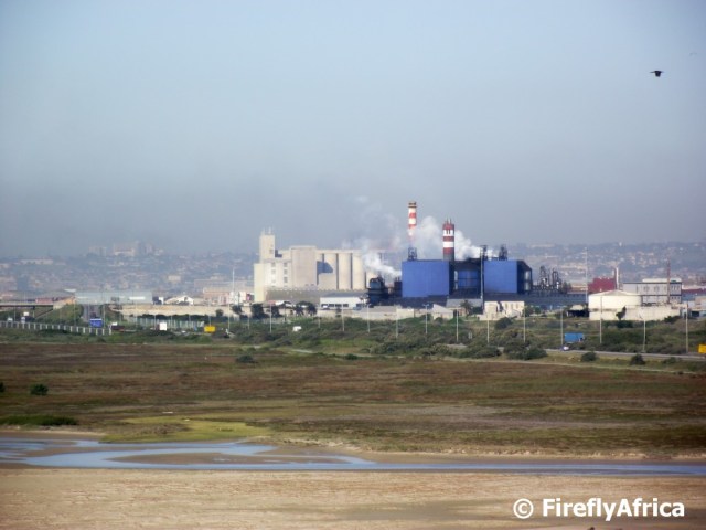 Everybody knows the big blue factory next to the N2 just after you passed over the Swartkops River on the way into Port Elizabeth.  The factory is Algorax and is a carbon black factory.  Carbon black is mainly used as a reinforcing filler in tires and other rubber products.  With three of South Africa’s biggest tyre manufacturers situated in the Nelson Mandela Bay metro the factory is situated within close range of all of these.  This is the view of the factory from Bluewater Bay across the Swartkops River.