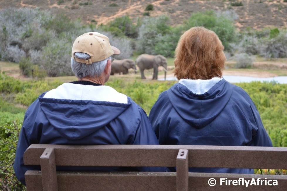 Watching elephants doesn’t always have to be done from a back of a game viewing vehicle or your own car. Addo Elephant National Park has a waterhole with a nice viewing area at its main rest camp and often visitors arriving at the park gets to see elephant here before they even drive into the game viewing area.