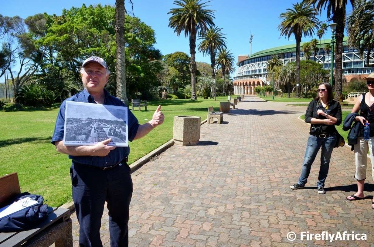 Last weekend I was part of the most informative walking tour of St Georges Park. Photographer and journalist Ivor Markman has done some tremendous research on the park and it’s history over the years and in the process not just collected tons of interesting information, but also some very rare photographs. Here he is showing off one of the oldest known pictures of the park while standing on the same spot it was taken way back then.
