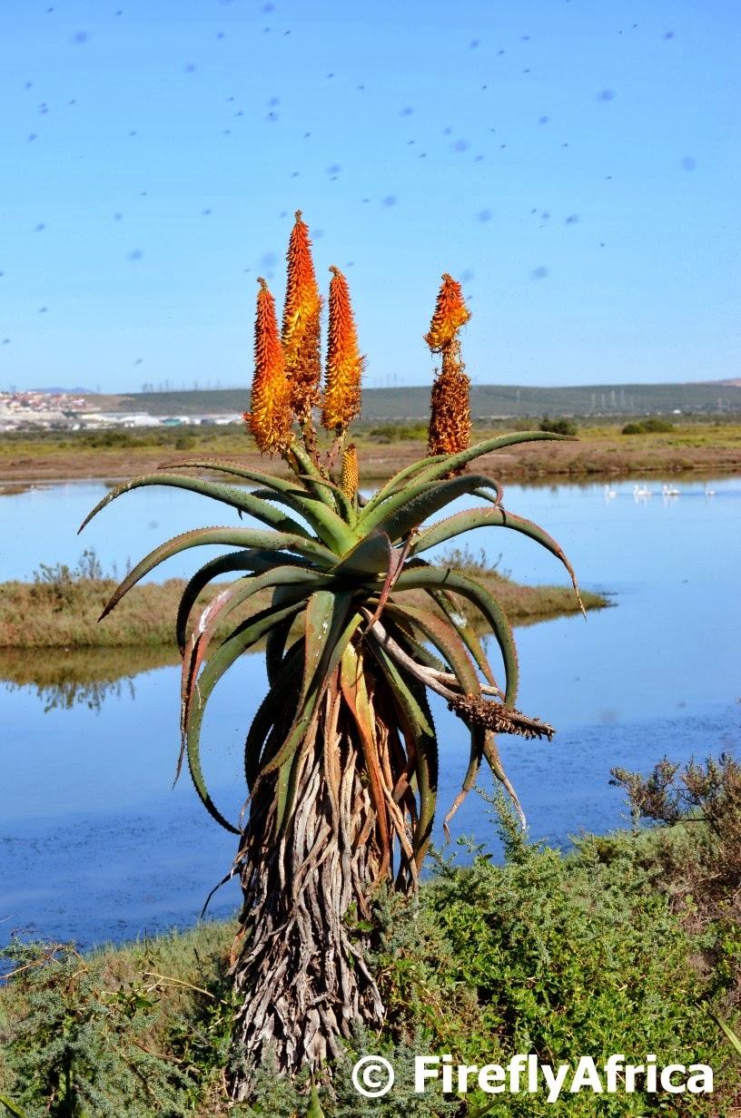 Have aloe, will photograph. That is the case with me when I find a flowering aloe somewhere in the wild. With the aloes’ flowering season something of the past I will run out of pics soon, but seeing that I still have one or two, I’m posting one today. This aloe is from the Flamingo Trail in the Zwartkops Nature Reserve and the little smudges above it isn’t from a dirty lens but thousands of little muggies (midges) swarming around us at one stage.