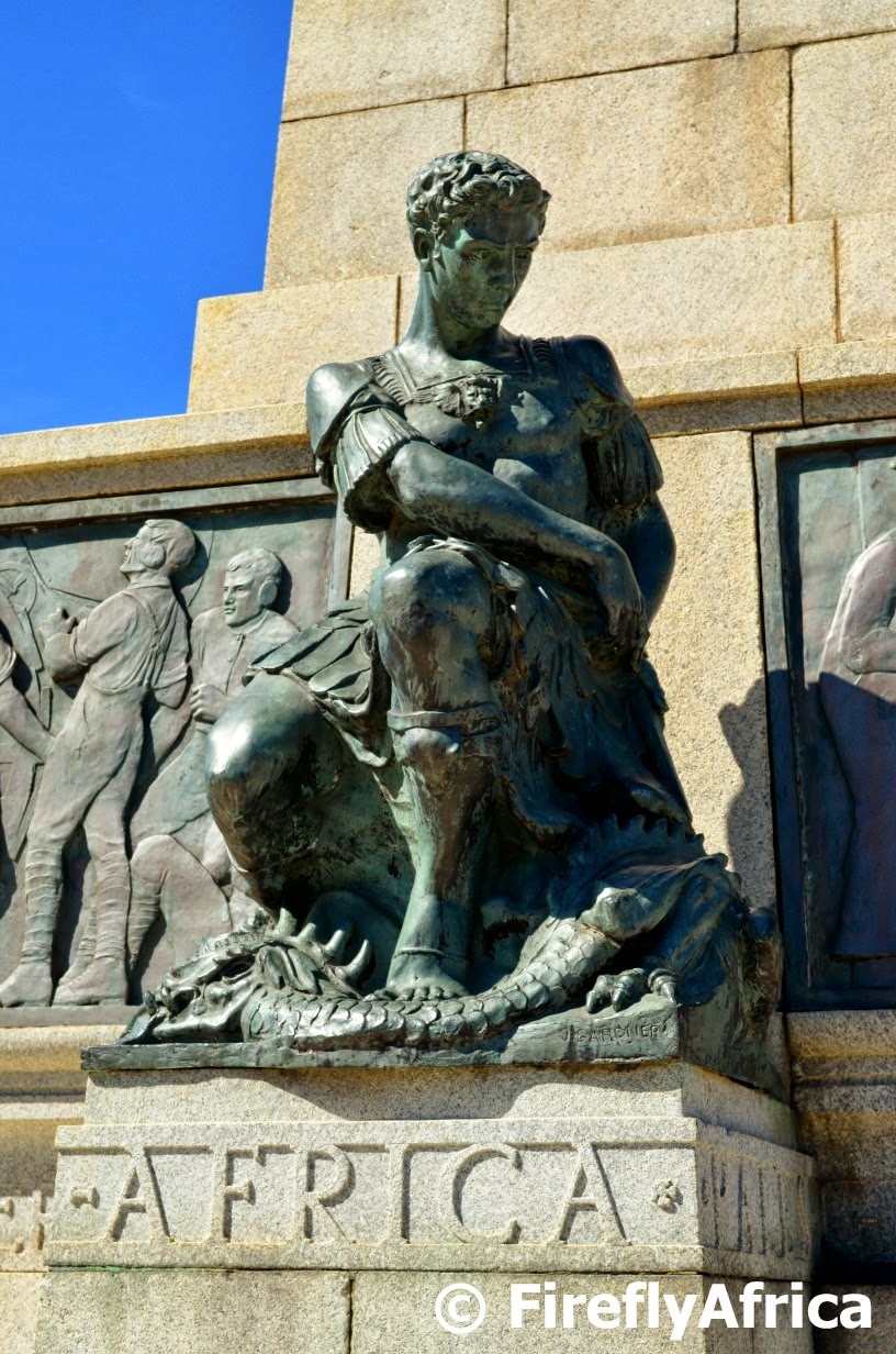 Most people who have been to or driven past St Georges Park know the Cenotaph (war memorial) in front of the Nelson Mandela Metropolitan Art Museum.  I wonder though how many people know that one of the figures forming part of the Cenotaph is St George himself,  sheathing his sword moments after killing the dragon.