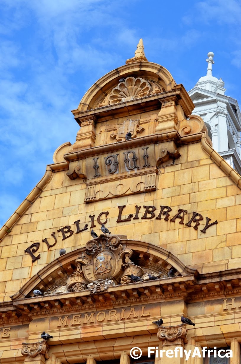 The Public Library across the road from City Hall and Market Square in the city centre is my absolute favourite historic building in Port Elizabeth both inside and out. The library building was opened in 1901 and the interesting part of it was that the front facade was built in England, dismantled and brought down to Port Elizabeth in numbered blocks to be assembled in front of the building.