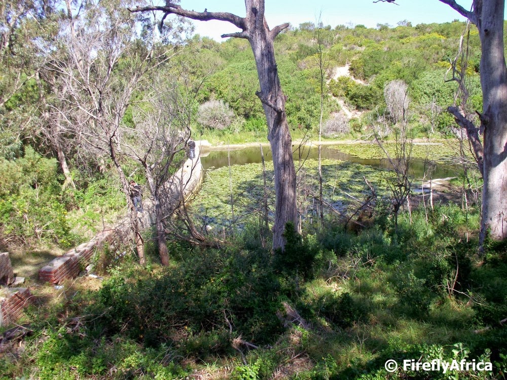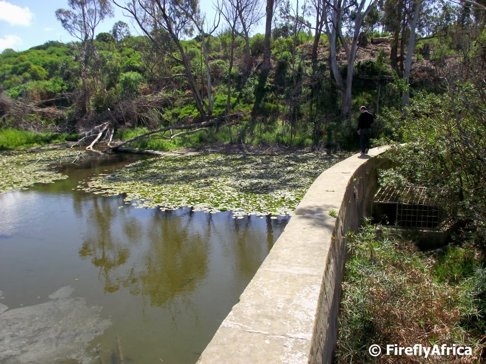 We (us being friends and fellow cachers Seekoei and erenei and obviously myself) approached the dam on a track from the old Boet Erasmus Stadium side. The coordinates then took us off the track and along a path through the bush. The valley suddenly opened up and there was this stunning spot and the dam. I wonder if the local boys every come fishing here cause there was a couple of big fish splashing around when we were walking across the dam wall. It really was a great experience to discover the dam. Something I’ve heard about but have never seen. Another great expedition and discovery thanks to Geocaching.