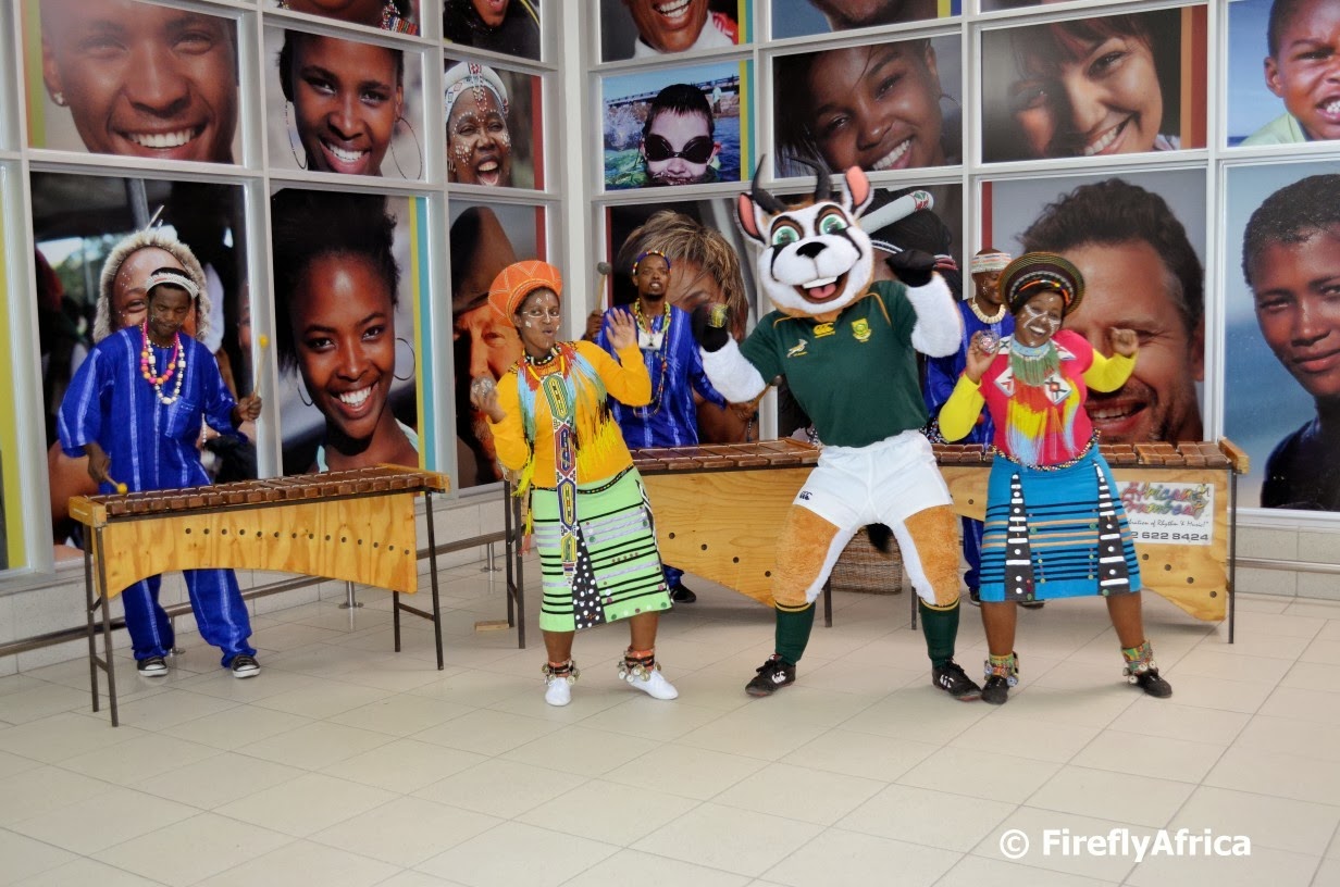 While waiting for the second flight to land Bokkie had some fun joining in with the marimba band and dancers from African Drumbeat.
