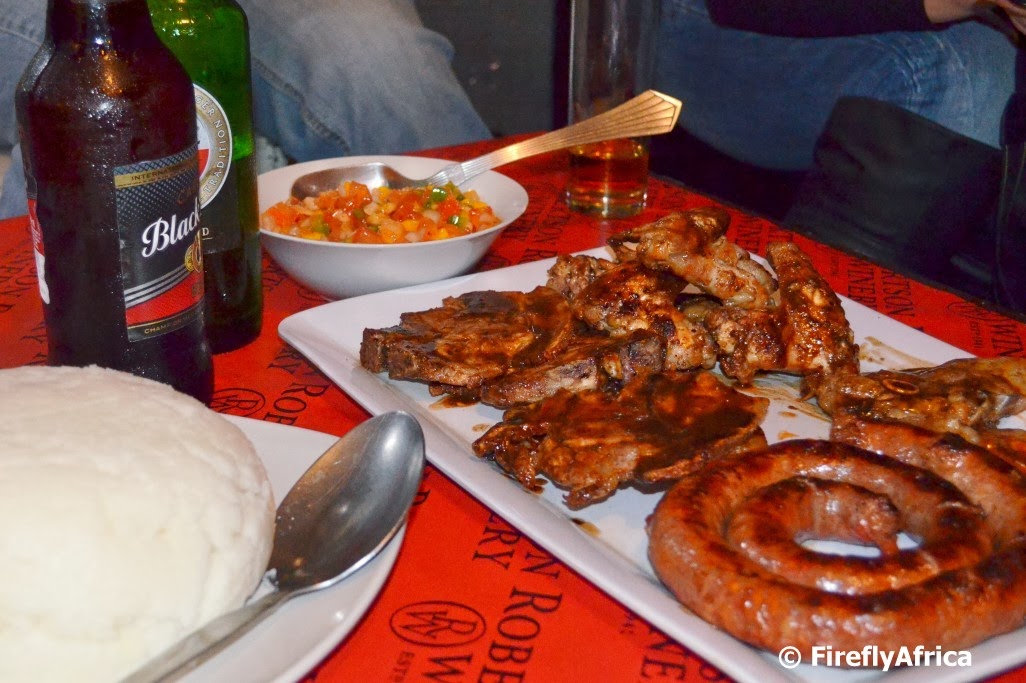 The word shisa nyama means burned meat in Zulu and a Shisa Nyama refers to a township restaurant or tavern where they serve mainly braaivleis (barbequed meat for those who don’t know what a braai is).  In most case the Shisa Nyama will have a butchery attached to it so you have a choice of ordering whatever off the menu or choose your meat from the fridge before it gets braai’d by the establishment’s braaimaster for you. Everybody knows Shisa Nyamas like Mzoli’s Place in Cape Town, Panyaza in Soweto and Max’s in Durban, but at the recent Nando’s Shisa Nyama Championship a Port Elizabeth establishment kicked dust in all the big boys eyes, walking away with the honours.  I’ve been to Chilleks in Walmer Township a couple of times before and I can vouch for their food.  These guys know how to braai.  They may not be as big or busy as Mzoli’s but you are assured of getting good shisa nyama.  My last visit was with a group of travel bloggers and on our menu was lamb and pork chops with their magic basting, chicken wings, tomato boerewors (sausage), pap, chakalaka (a South African vegetable relish, usually spicy) and chips, washed down with a couple of quarts beer.  I will be back soon.