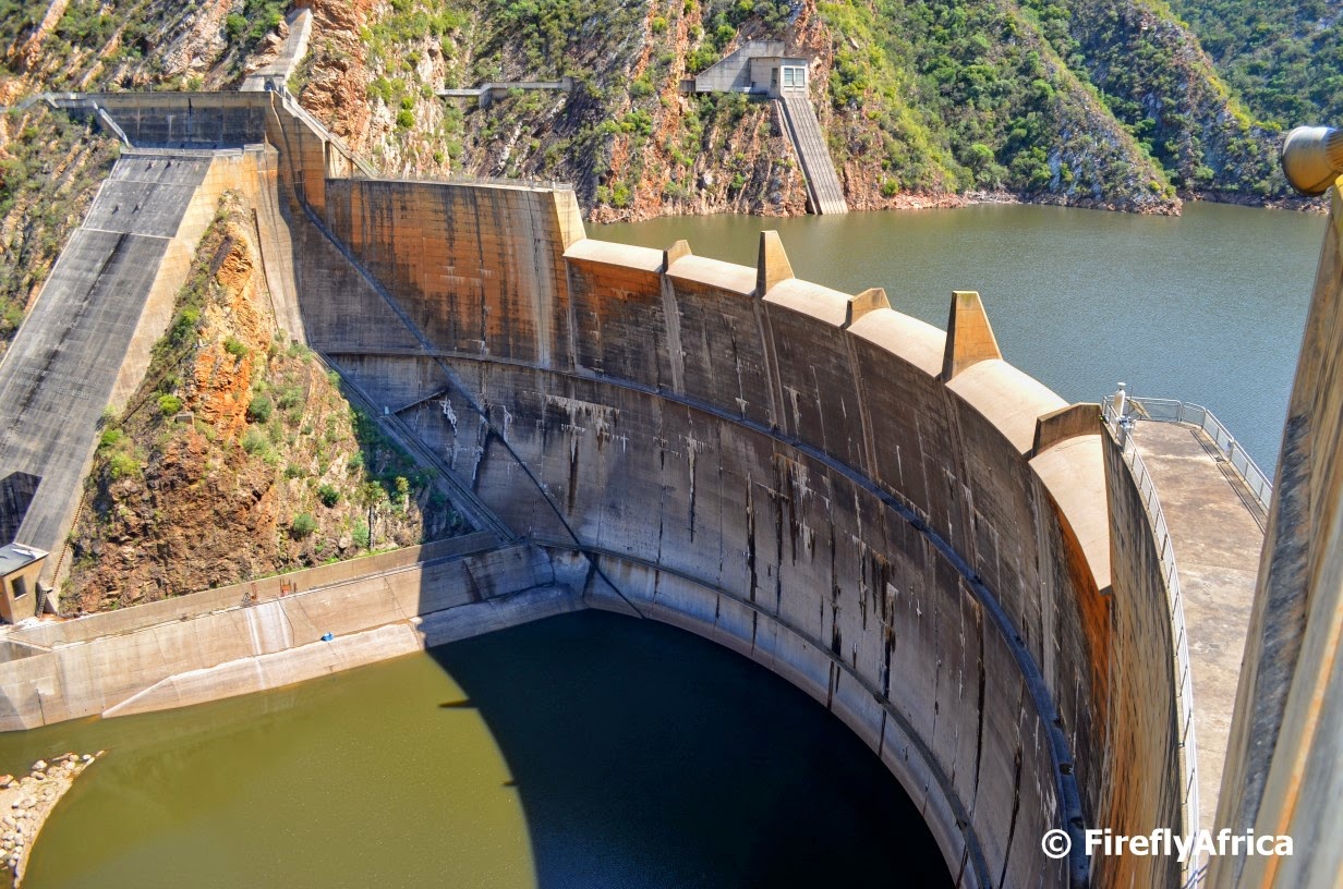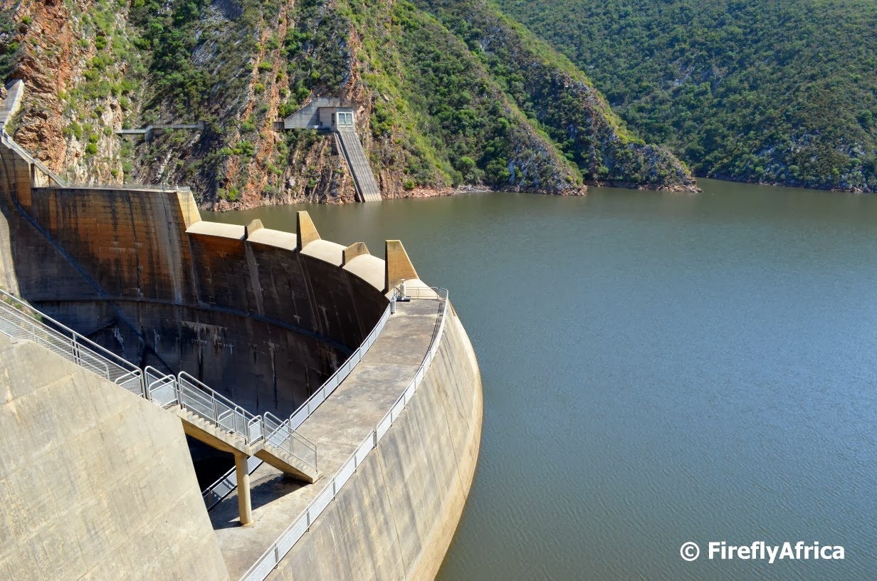 The dam is a double curve arch dam with an 82 m high wall and storage capacity of 128,7 million m3. The catchment area is inside the Baviaanskloof Wilderness Area from where the Kouga River carries the water into the 34 km long dam basin. Other than for water supply the dam was also built as a flood control mechanism to lessen the impact of a flood on the lower Gamtoos River. Visitors can get right up to the point where I took the photos from for a view of the dam and dam wall with it becoming an even more exceptional sight when the dam overflows.