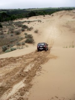 Boys will be boys and when it comes to boys and their 4×4 toys there is no stopping them. When the South African government banned driving on beaches both the angling and 4×4 fraternities took a big knock. The anglers couldn’t go as far along the beaches as they used to or had to find overland shortcuts while the 4×4 okes had to stick to mountain trails and off road paths. There is one place I know of where the boys can test their toys and sand driving skills though. Brakkeduine close to Oyster Bay (and St Francis Bay) in the Eastern Cape.