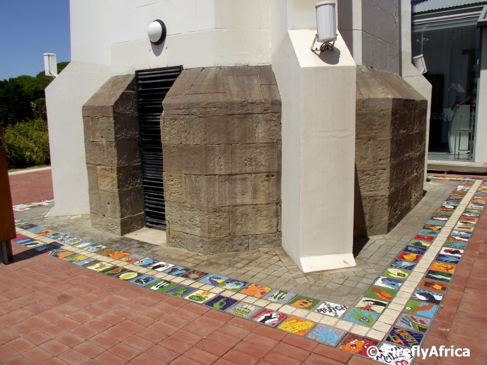 Everybody who visits the Donkin Reserve is in awe of the huge 470 m2 mosaic next to the pyramid. Very few actually notice the frame of mosaic blocks surrounding the base of the lighthouse. The mosaic blocks is a celebration of symbols and icons within Port Elizabeth and its surrounds referencing various stories, personal ideas and journeys. One actually have to spend some time and look at each one individually to really see what they are about and to appreciate the art as a whole more.