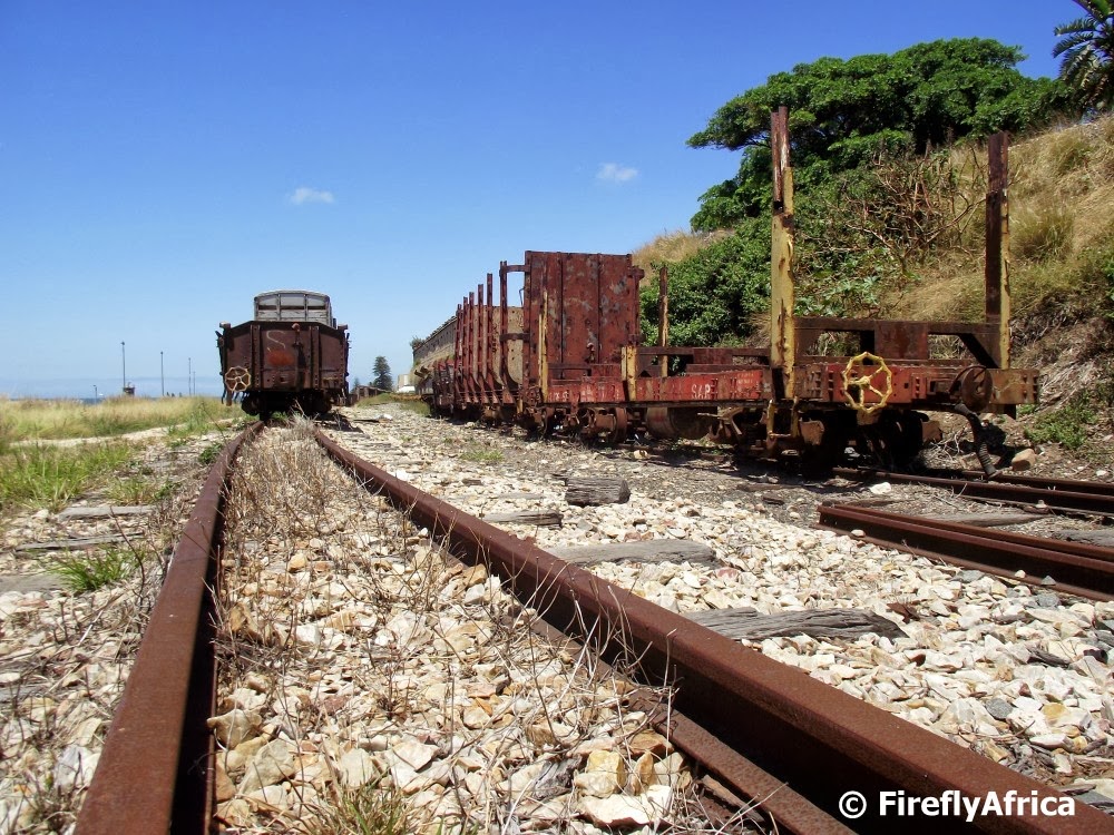 On a recent Geocaching outing I got to walk a bit around what is left of the old Humewood narrow gauge station. Of the actual station and sheds nothing really remains, but there are still a couple of carriages on the line between where the station used to be and Kings Beach. Makes for interesting photography.