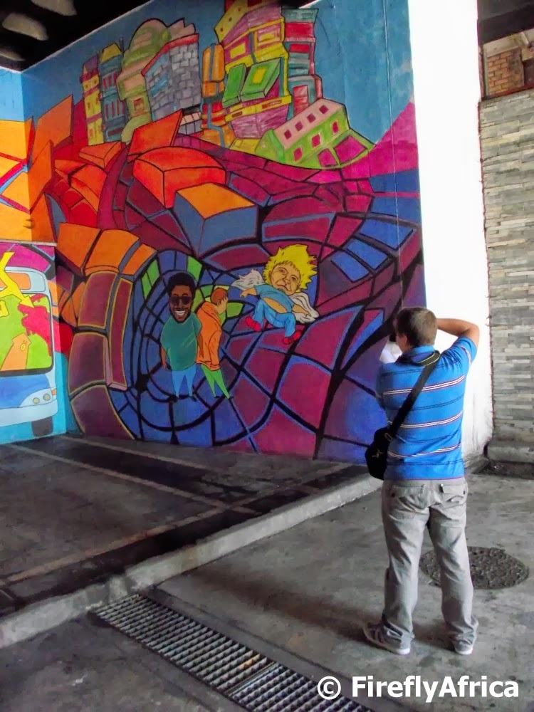 Adding even more colour and cheerfulness to the area is the Route 67 Bus Station Mural by 4BlindMice celebrating public transport and the daily journeys undertaken by the people of Port Elizabeth. There’s even a figure in the painting that looks like Riaan Cruywagen. Wonder if it was on purpose.